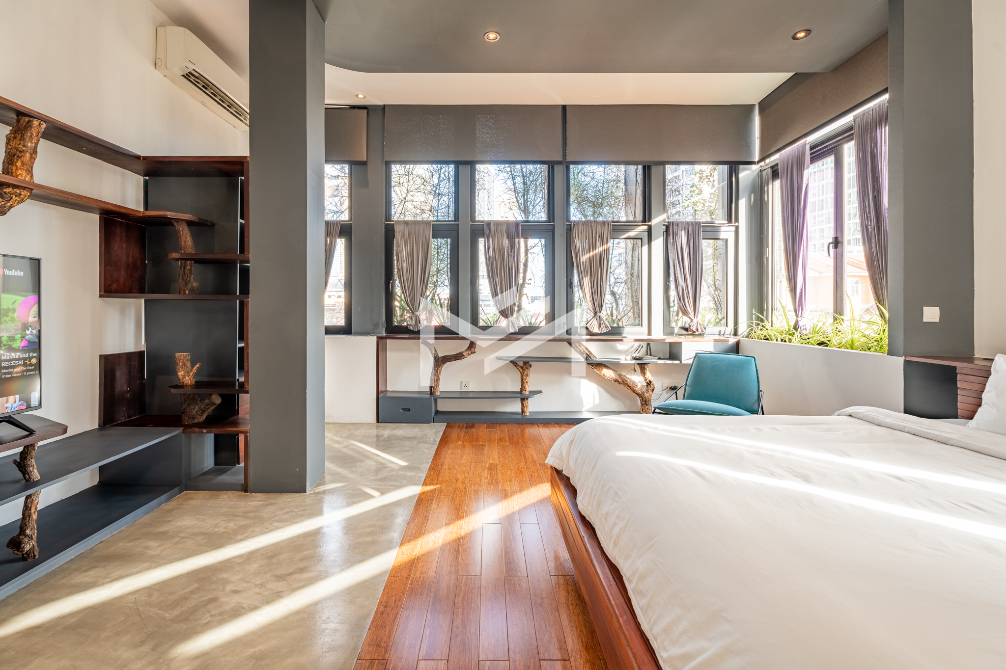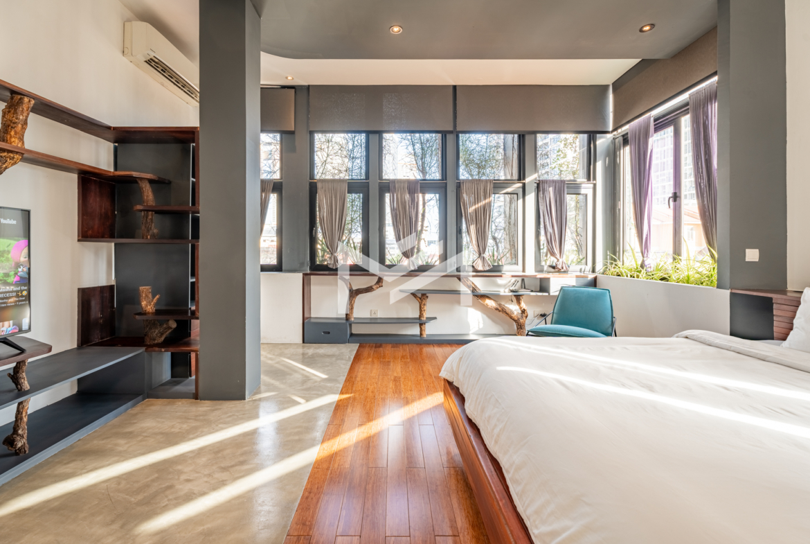 Character-filled and thoughtfully designed, this residence offers a unique living experience with full equipment, including a complete set of kitchenware. The balcony is decorated with plants, carefully maintained by the management, ensuring a refreshing green touch. Enjoy full services with 24-hour concierge support. With only 14 units in the building, it offers rare privacy and exclusivity in a central location—just a short walk to Independence Monument, AEON Mall, Super Duper, and only 5 minutes from BKK1.
