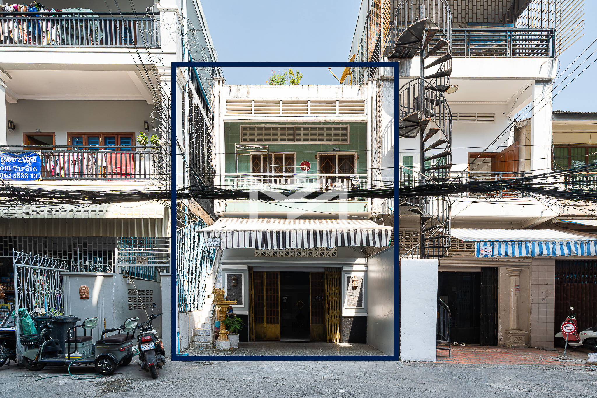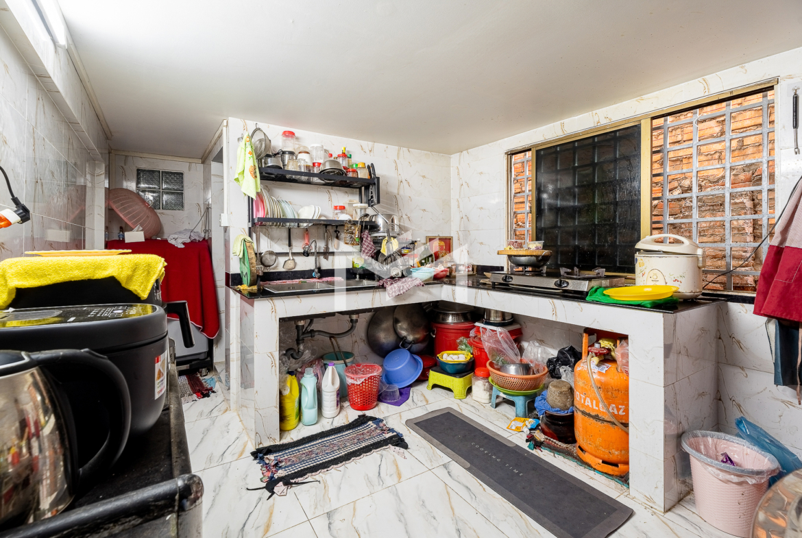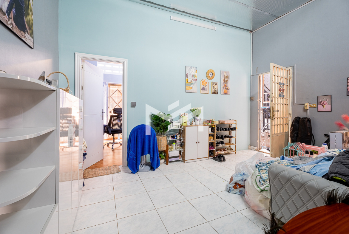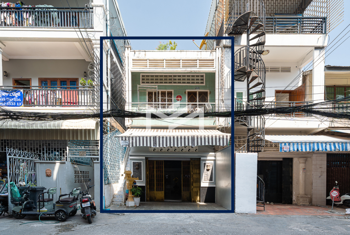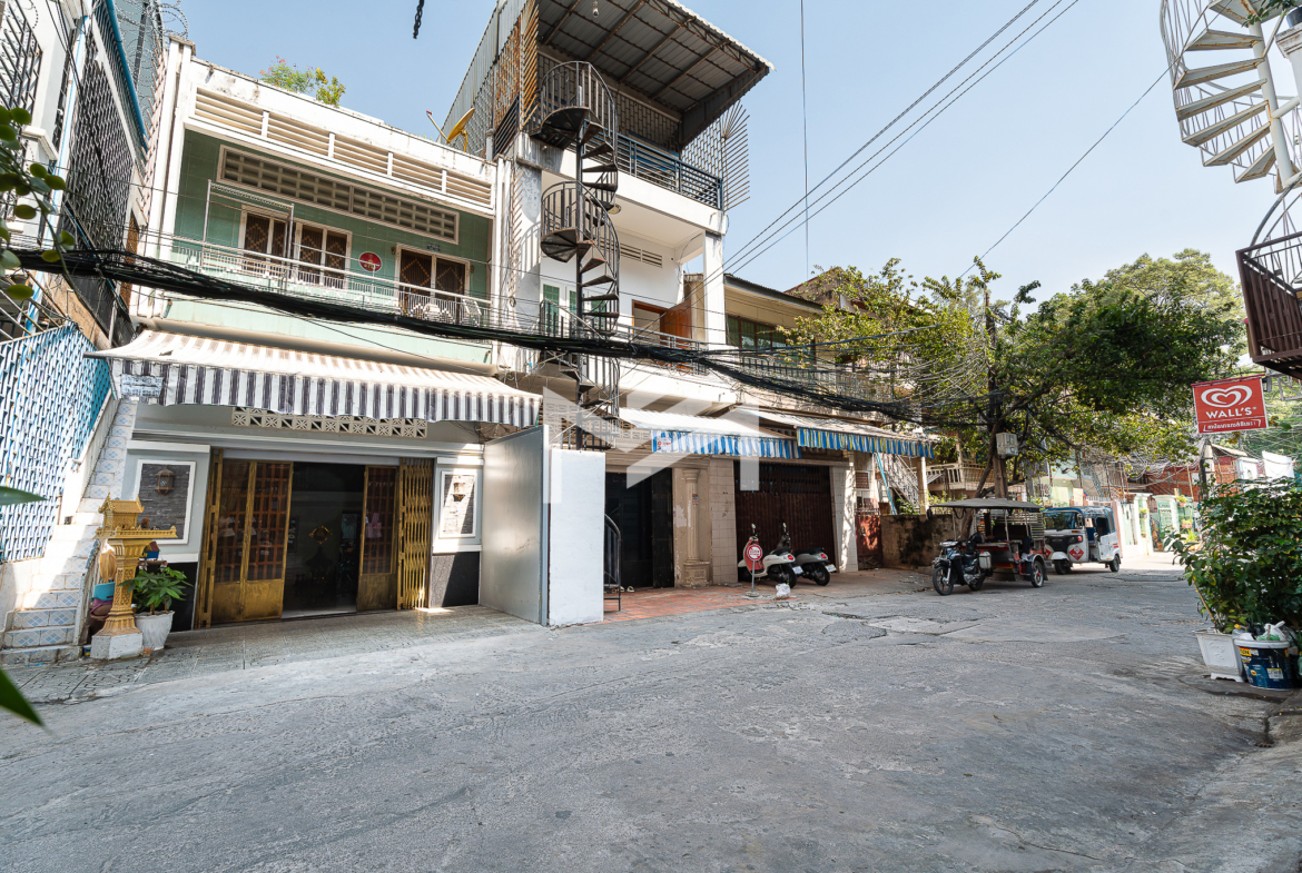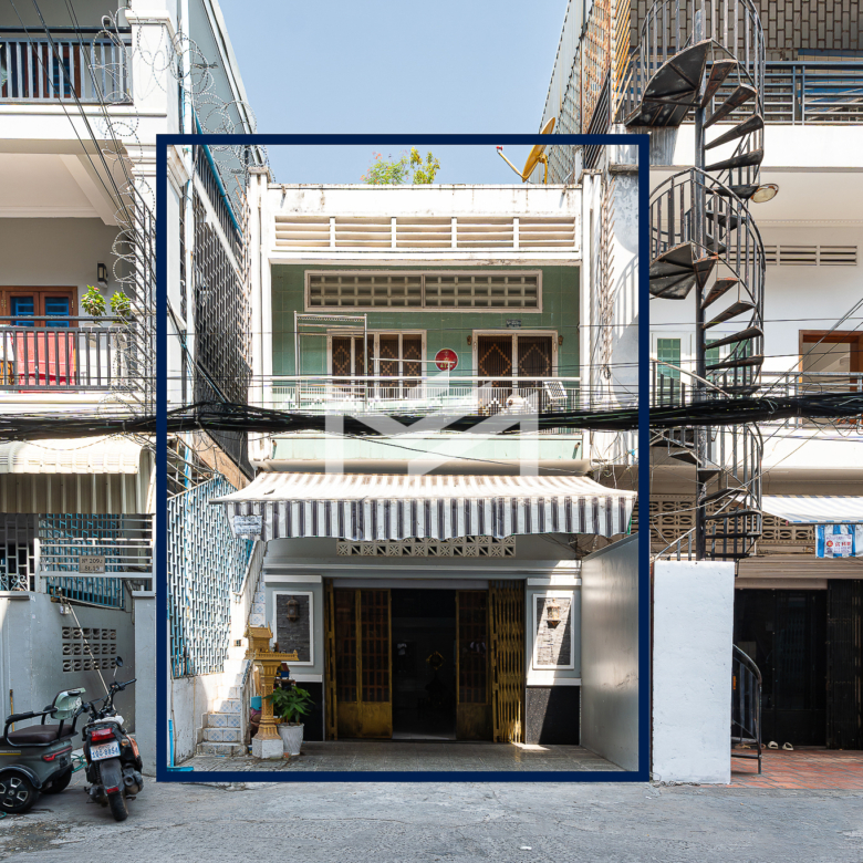 Ground floor, mezzanine, and first floor. This is a typical Khmer house, well maintained and suitable for comfortable living. The property is located on a peaceful Road 19Z, close to Street 240 and the Royal Palace, offering a quiet residential environment in a prime central area. The house is for sale with a hard title (L-Map).