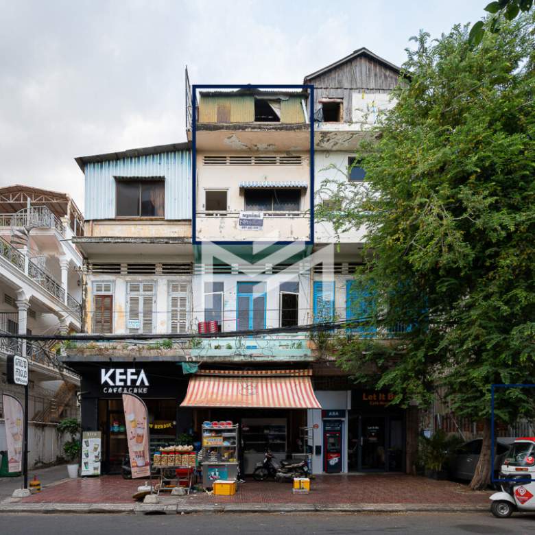 Located directly opposite Plantation Hotel on Street 184, near the corner of Norodom Blvd. Easy access from the front entrance. This old flat requires renovation—an ideal chance to buy at a low price, renovate, and add value.