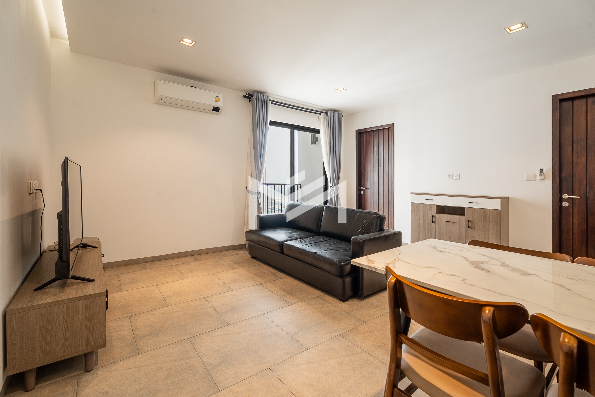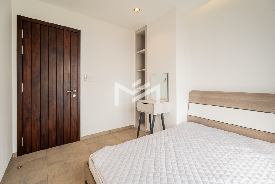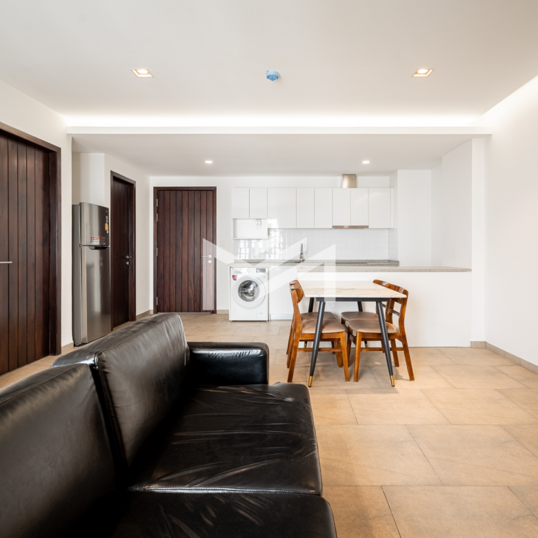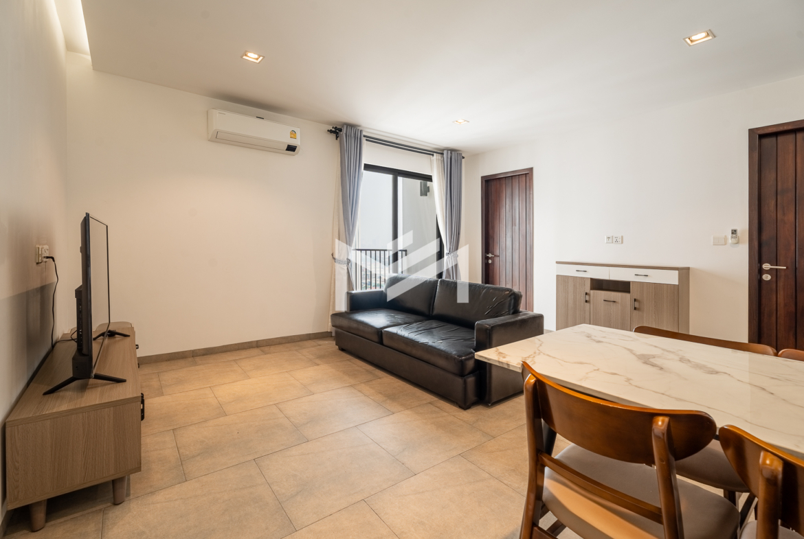 Furnished unit filled with natural light and excellent airflow, offering a comfortable and practical living environment. The layout includes two bedrooms and one bathroom, along with a private balcony that adds outdoor space for relaxation. Located in a community setting south of BKK1, the property is less than a 10-minute drive to the central area, providing both convenience and a quieter residential atmosphere. It is well suited for a single professional, couple, or small family seeking functional living close to the city.