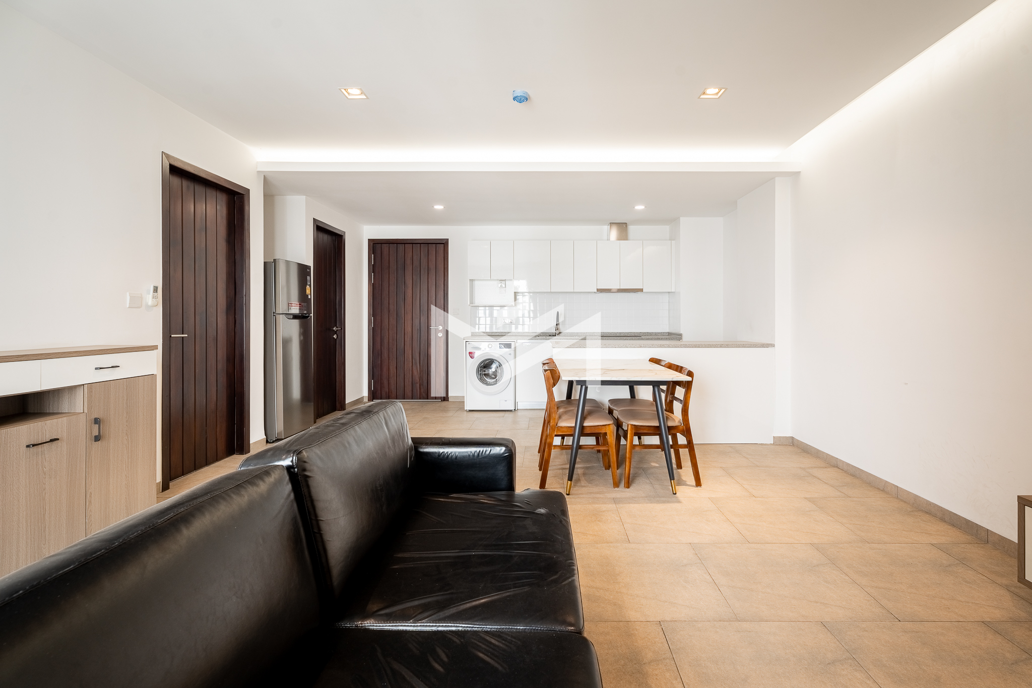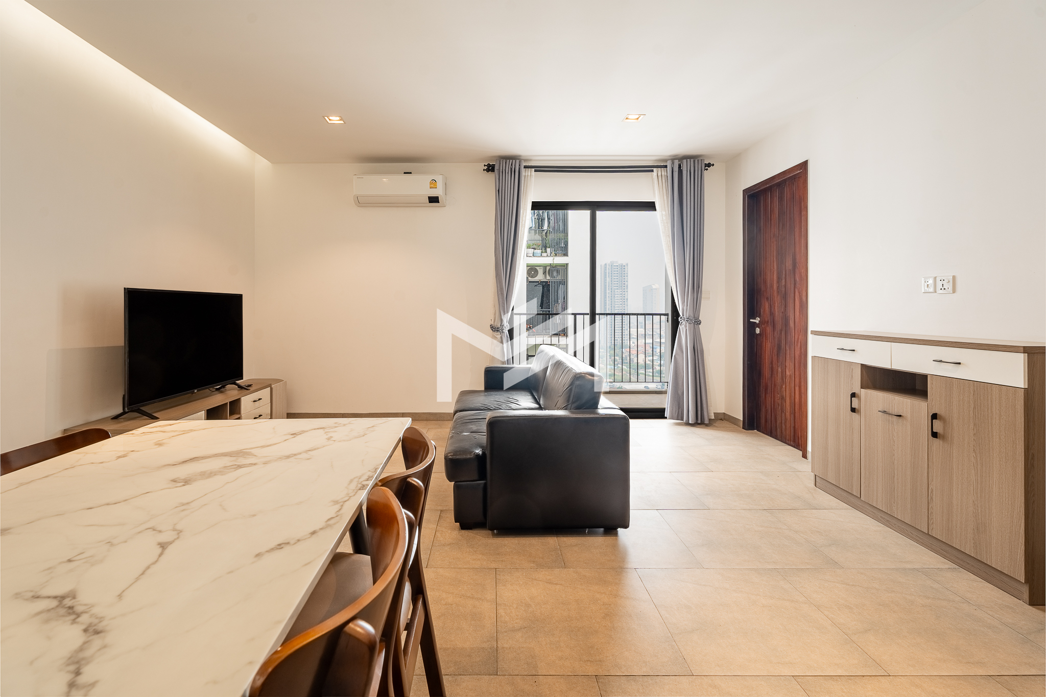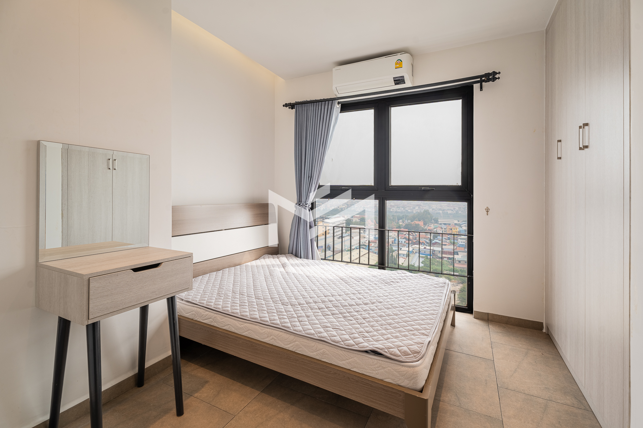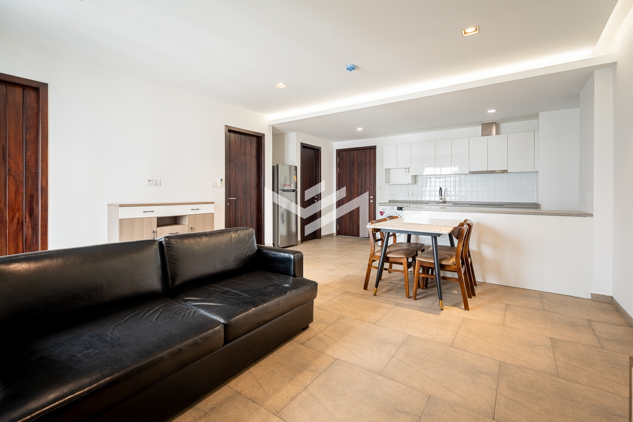 Furnished unit filled with natural light and excellent airflow, offering a comfortable and practical living environment. The layout includes two bedrooms and one bathroom, along with a private balcony that adds outdoor space for relaxation. Located in a community setting south of BKK1, the property is less than a 10-minute drive to the central area, providing both convenience and a quieter residential atmosphere. It is well suited for a single professional, couple, or small family seeking functional living close to the city.