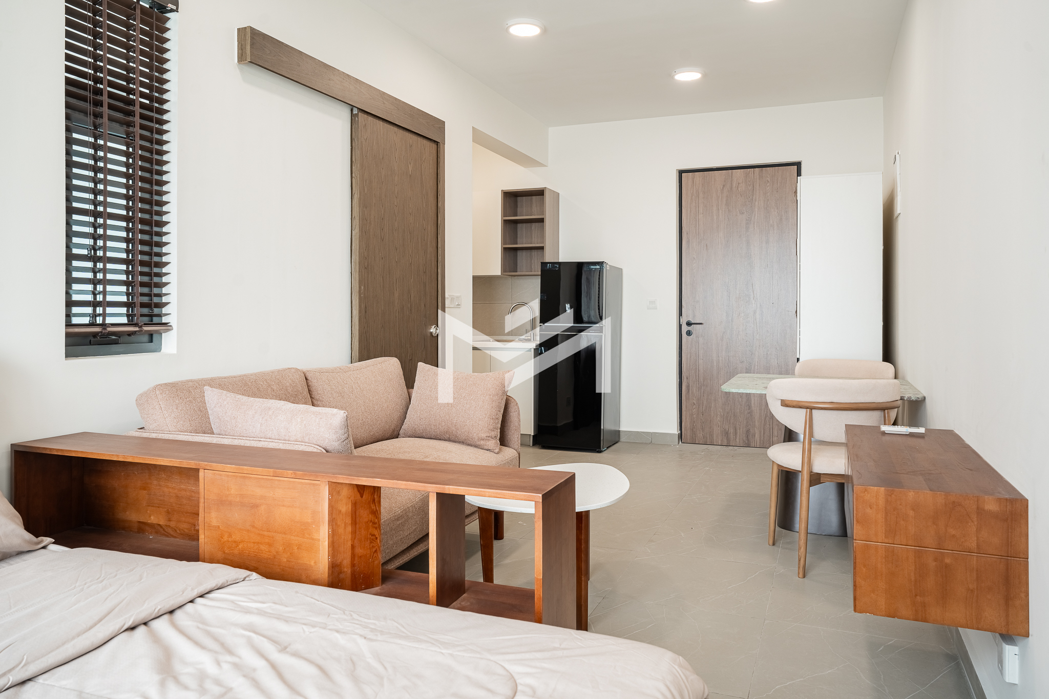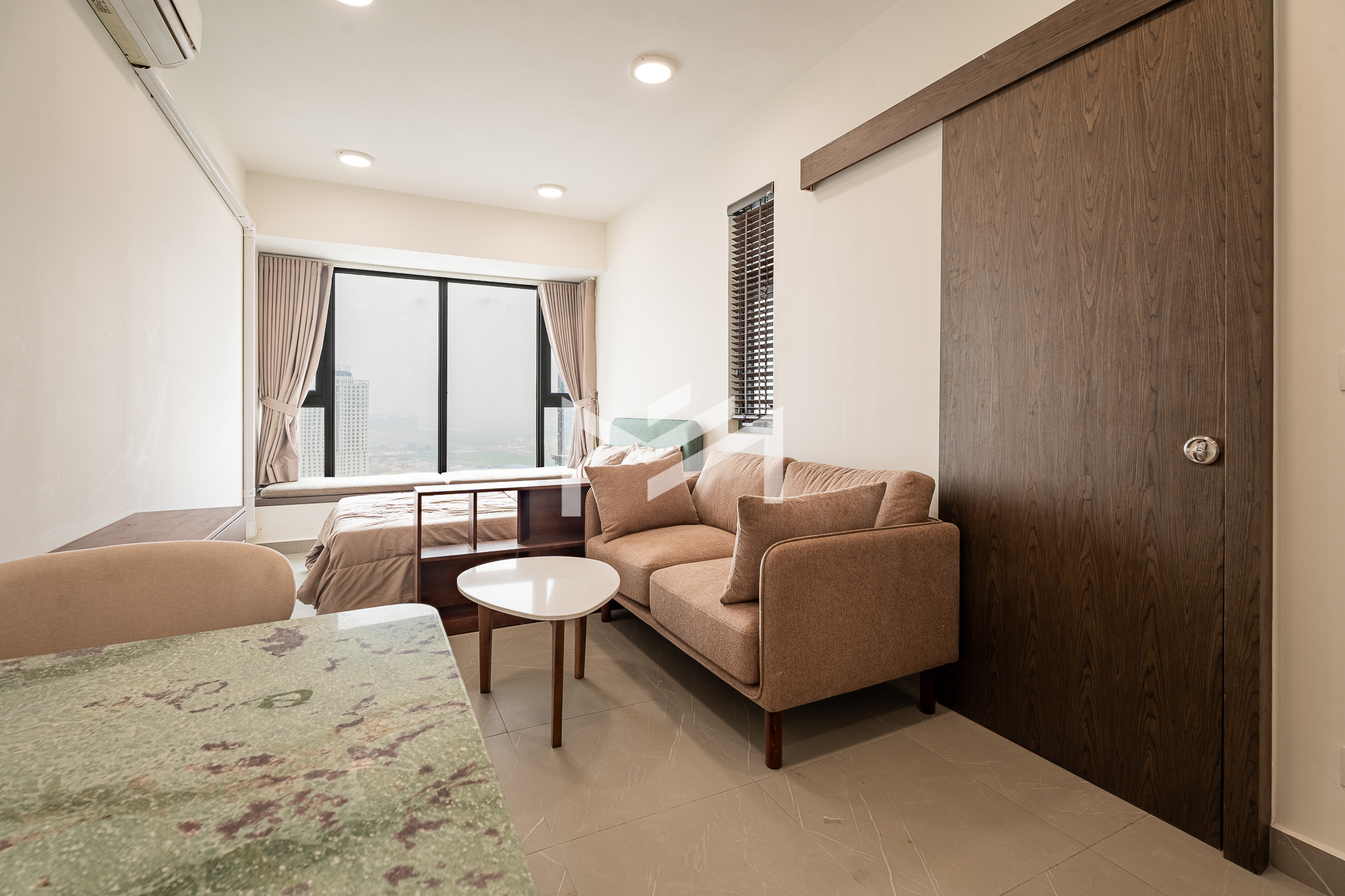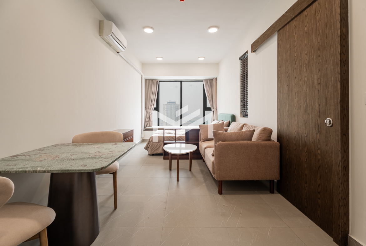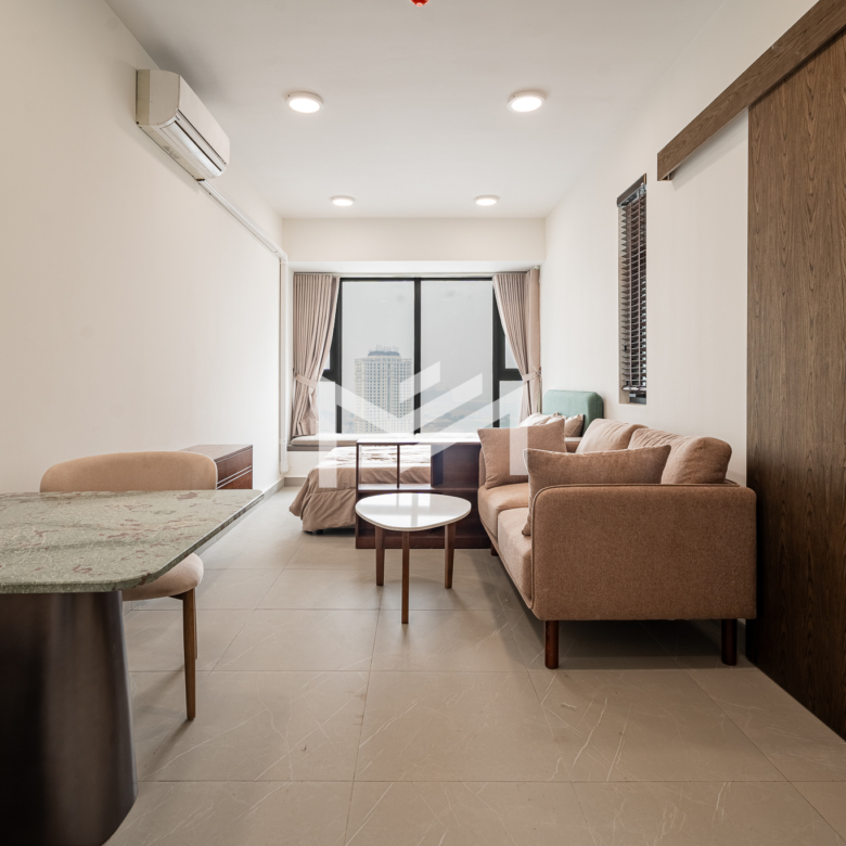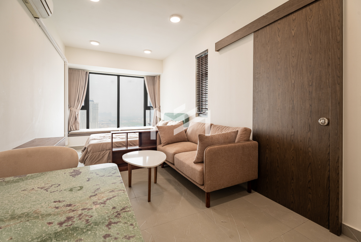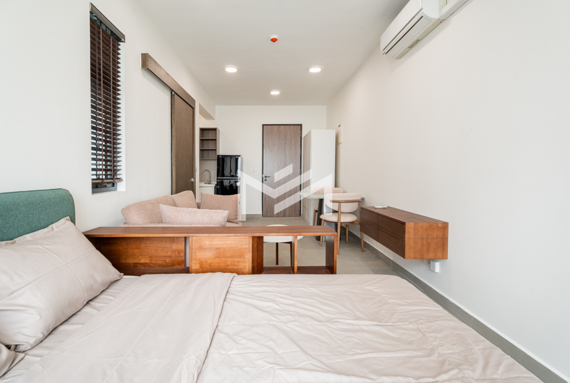 Nicely interior-designed studio unit with a cozy and warm atmosphere, located on a high floor and offering excellent open views. The layout is comfortable and move-in ready, making it highly suitable for a single professional or couple seeking a convenient home at an economical price. Well located in the southern part of Phnom Penh, the property is within less than a 10-minute drive to the city center and only around 5 minutes to Aeon Mall 3. Set within a great community environment, it provides both comfort and accessibility for everyday living.