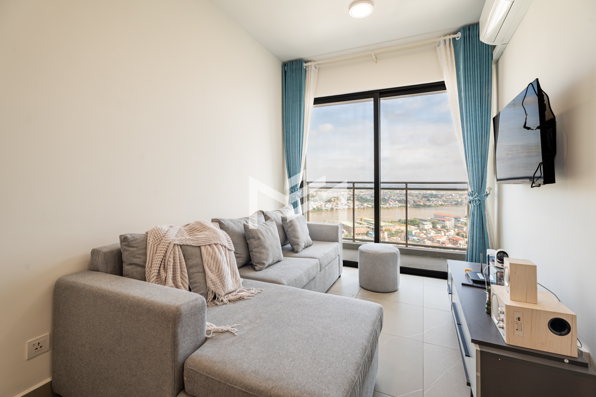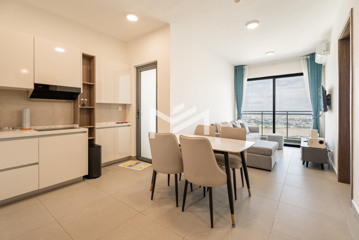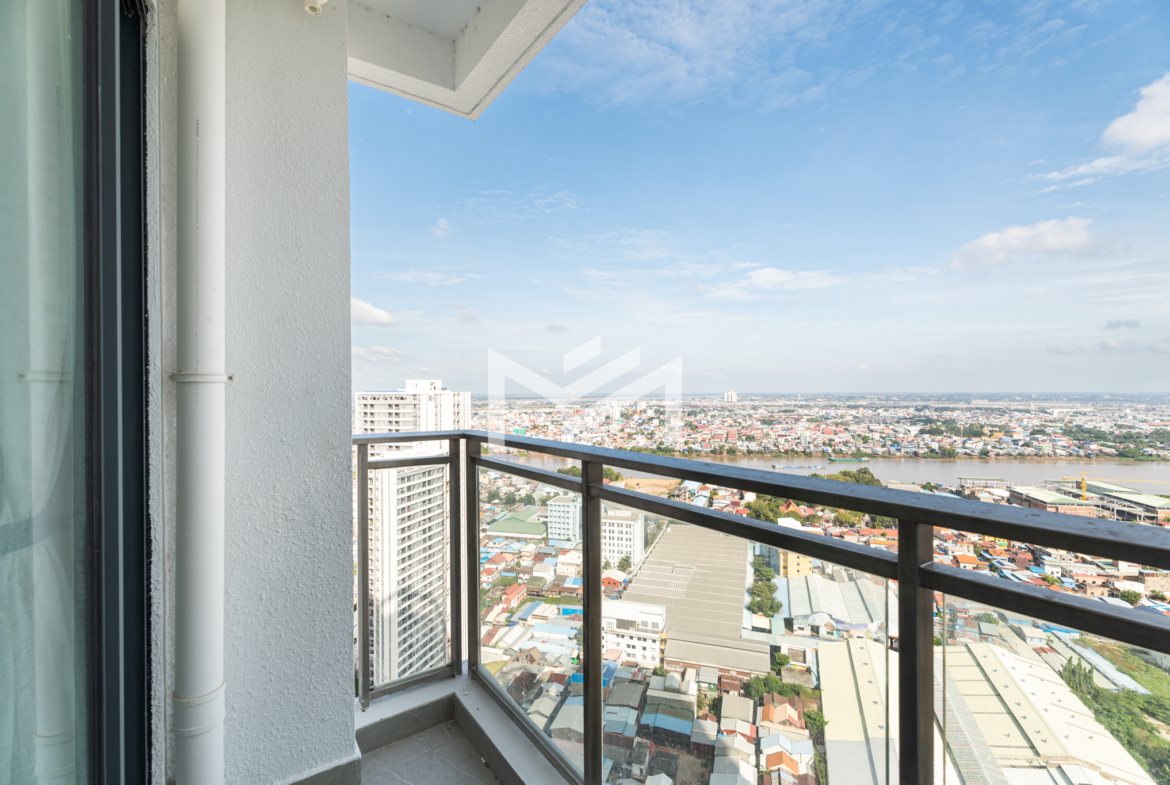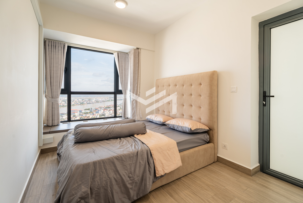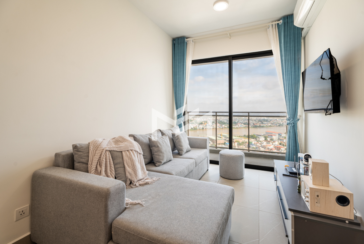 High-floor unit boasting breathtaking river and city views, fully furnished and well equipped for comfortable living. Residents enjoy a wide range of amenities within a lively, well-managed community. Move in effortlessly with just your suitcase. Ideally located on Hun Sen Boulevard, offering seamless access to the city via wide roads with minimal traffic congestion.