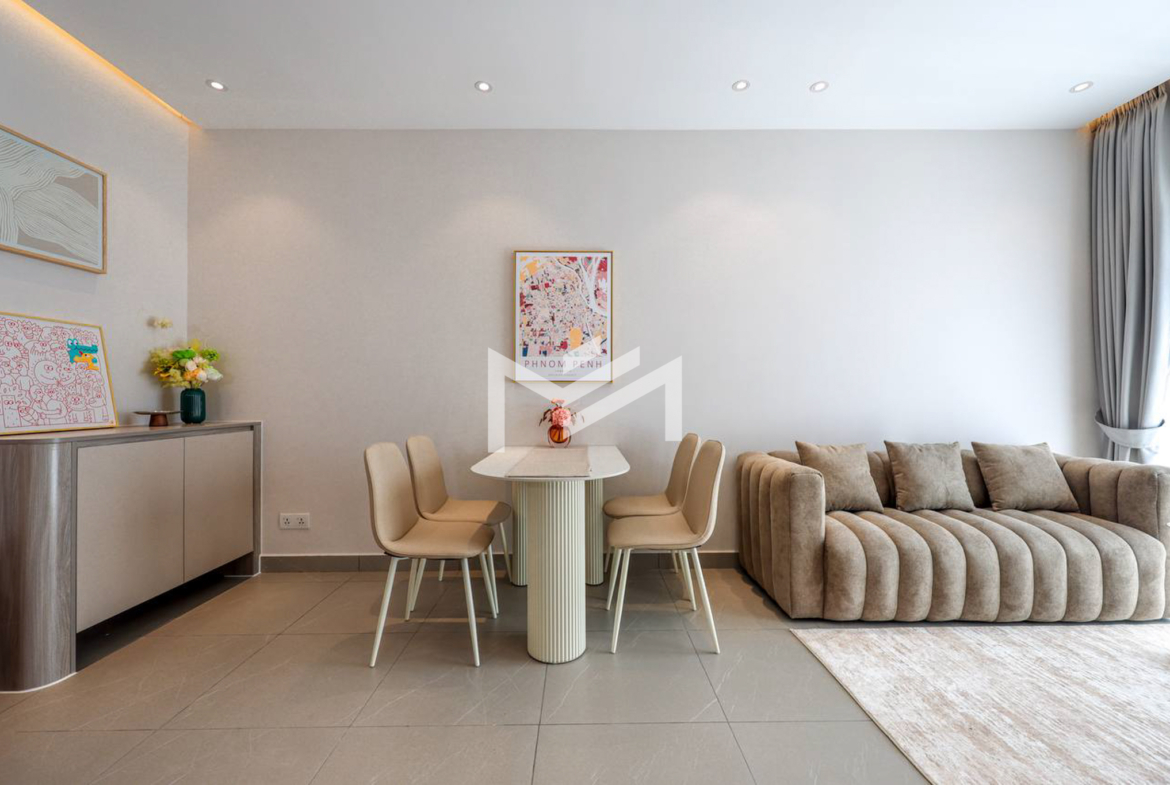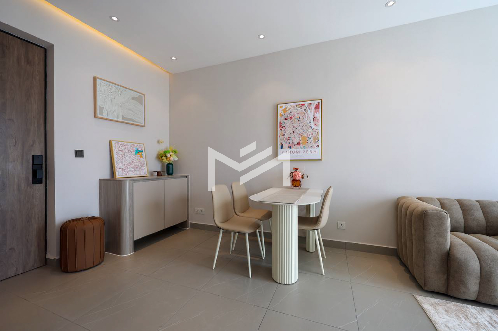 Elegant interior design with a cozy, warm atmosphere, tastefully furnished and ideal for a single or couple who enjoy a luxury condo lifestyle. The building offers full amenities, providing comfort and convenience at every level. Located on Hun Sen Boulevard, with easy access to BKK1 and Aeon 3, this unit is ready for immediate move-in—just bring your suitcase.