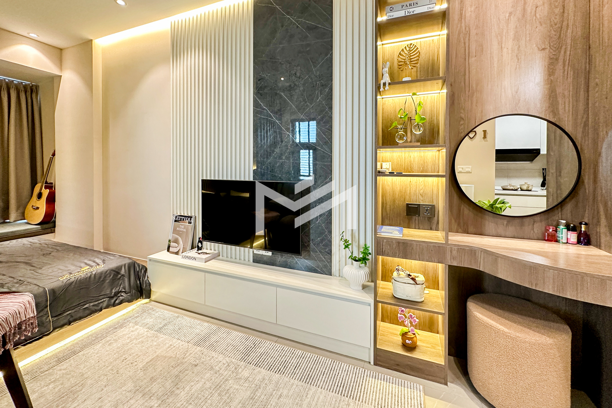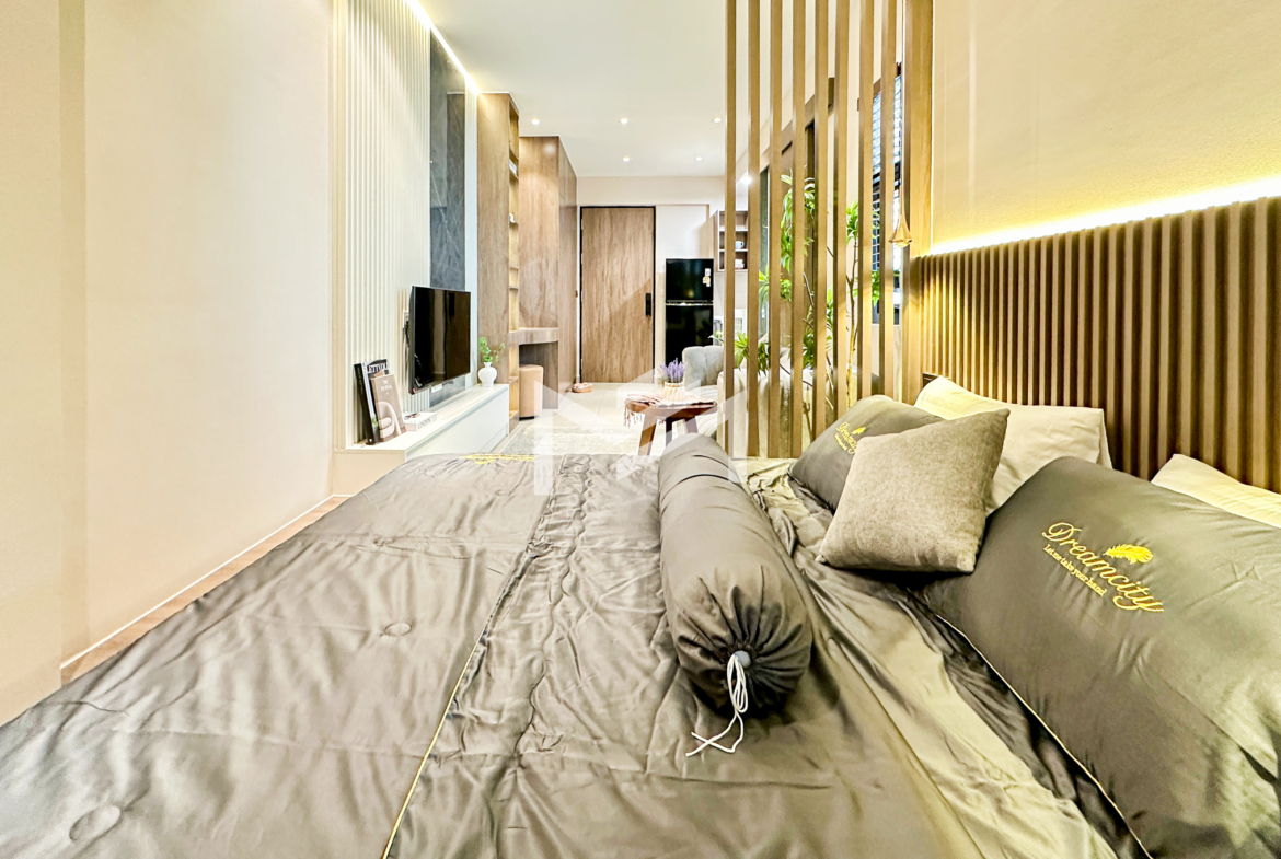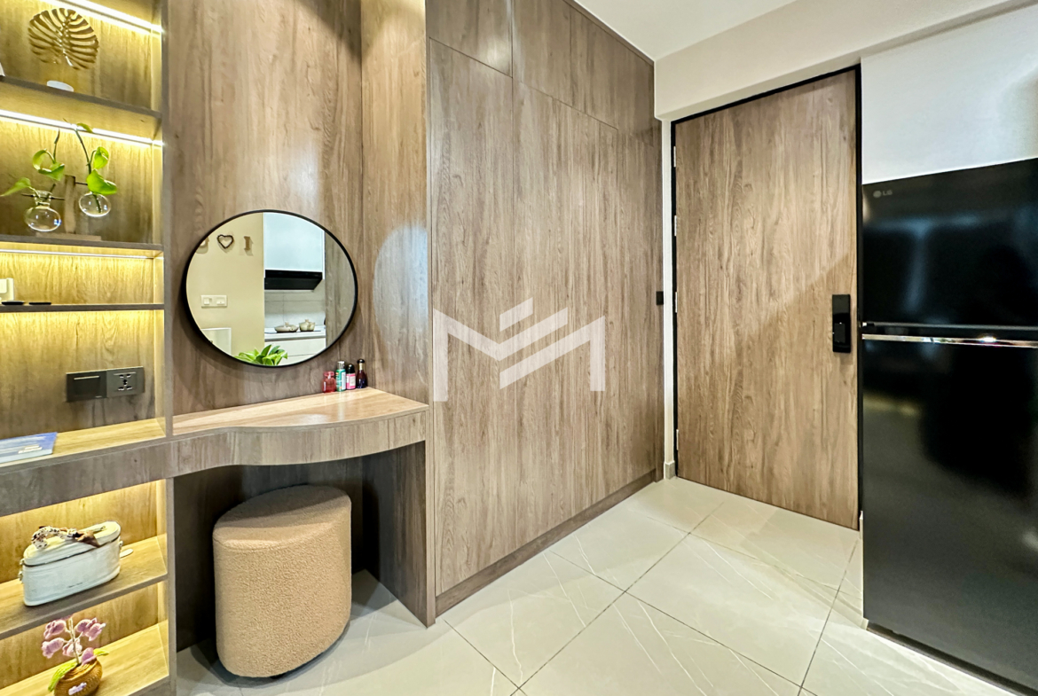 Elegant interior design with a cozy, warm atmosphere, tastefully furnished and ideal for a single or couple who enjoy a luxury condo lifestyle. The building offers full amenities, providing comfort and convenience at every level. Located on Hun Sen Boulevard, with easy access to BKK1 and Aeon 3, this unit is ready for immediate move-in—just bring your suitcase.