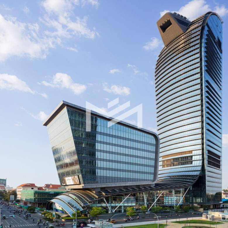 Grade A Office Space in Phnom Penh CBD, Located near Raffles Hotel Le Royal, the U.S. Embassy, French School, and Central Market. Office spaces available from 91 sqm to 1,700 sqm. Each office zone is equipped with 4 high-speed lifts for fast and convenient access. Free air-conditioning during business hours (Monday to Friday: 8:00 AM – 6:00 PM, Saturday: 8:00 AM – 12:30 PM). Make this luxury office space your first choice for setting up your business.