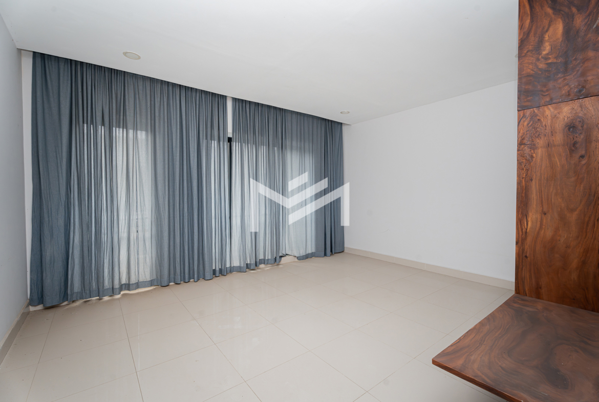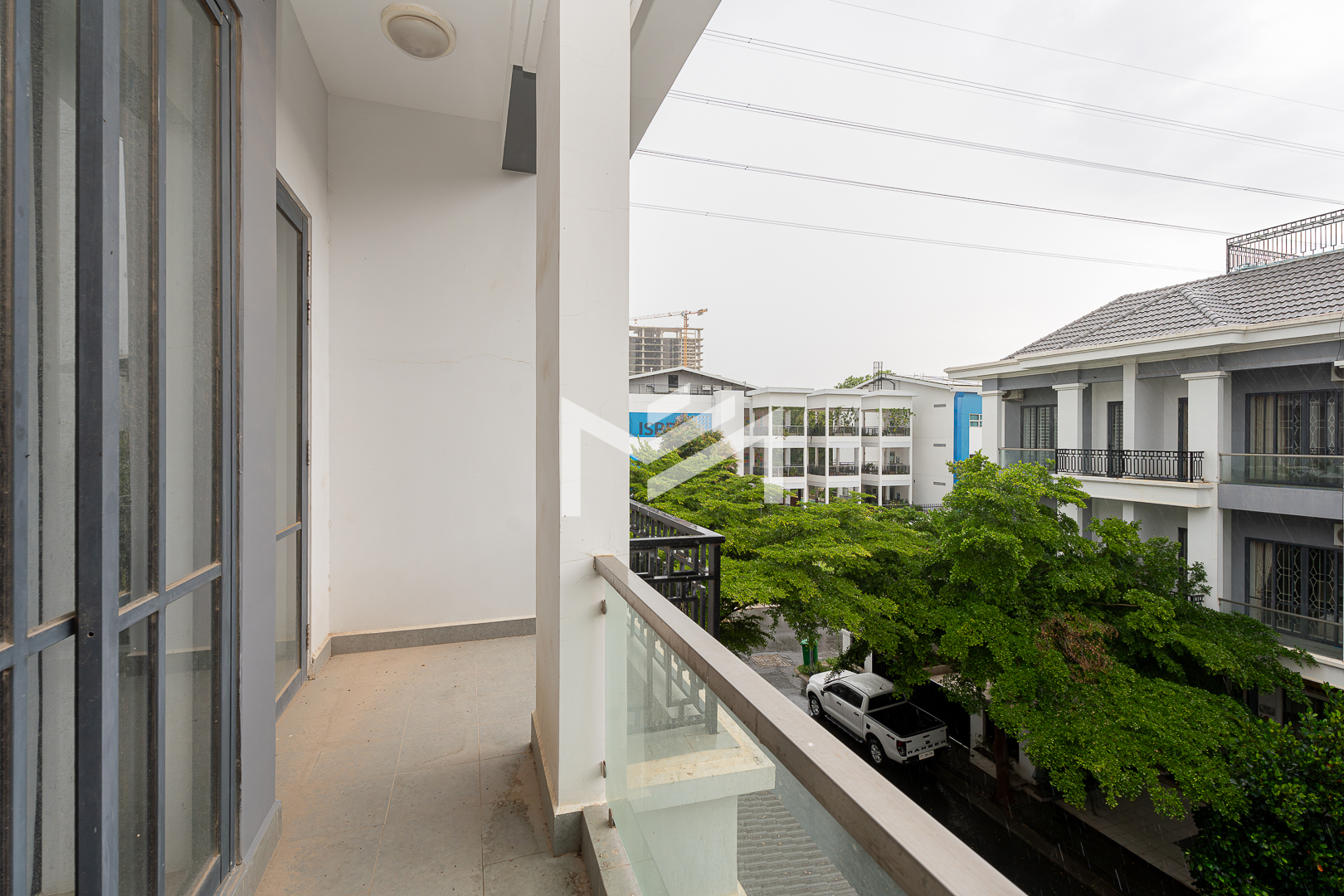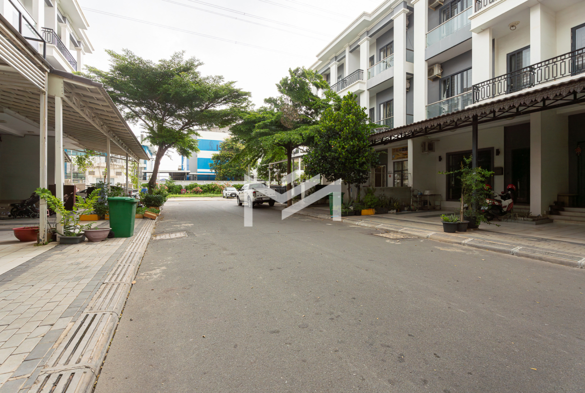 This three-floor link house is offered unfurnished, providing a great opportunity for buyers to design and furnish the home to their own style. The property features a front yard with a roof shade, suitable for both relaxing outdoor space and secure parking. Located within a small and secure compound in a prime area just next to IPS Phnom Penh, the house enjoys excellent convenience. It is close to Chip Mong Mega Mall and approximately a 5-minute drive to Aeon Mall Mean Chey, while Techo International Airport is around 25 minutes away, making it ideal for both living and long-term investment. The property comes with a hard title and is ready to buy and move in immediately.