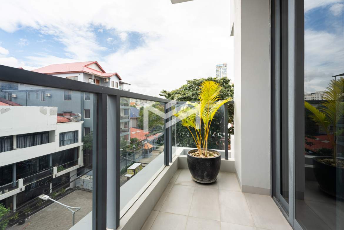 This well-designed unit features a large living room, a western-style kitchen, and generous closet space. With a modern layout and high-quality finishes, it offers a comfortable living experience in Phnom Penh’s most sought-after expat neighborhood. Located in BKK1, it is within walking distance of shops, restaurants, and all essential amenities.