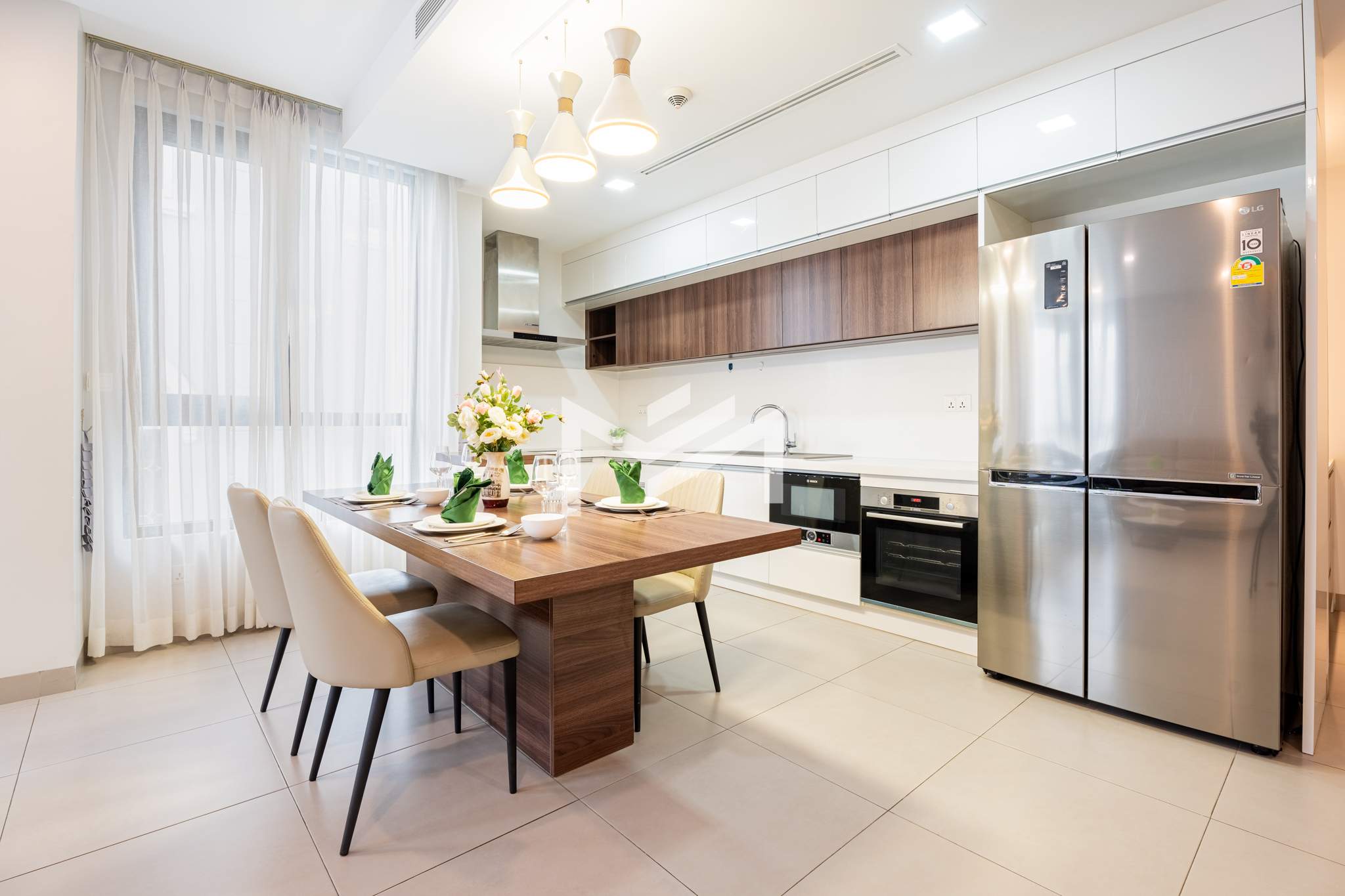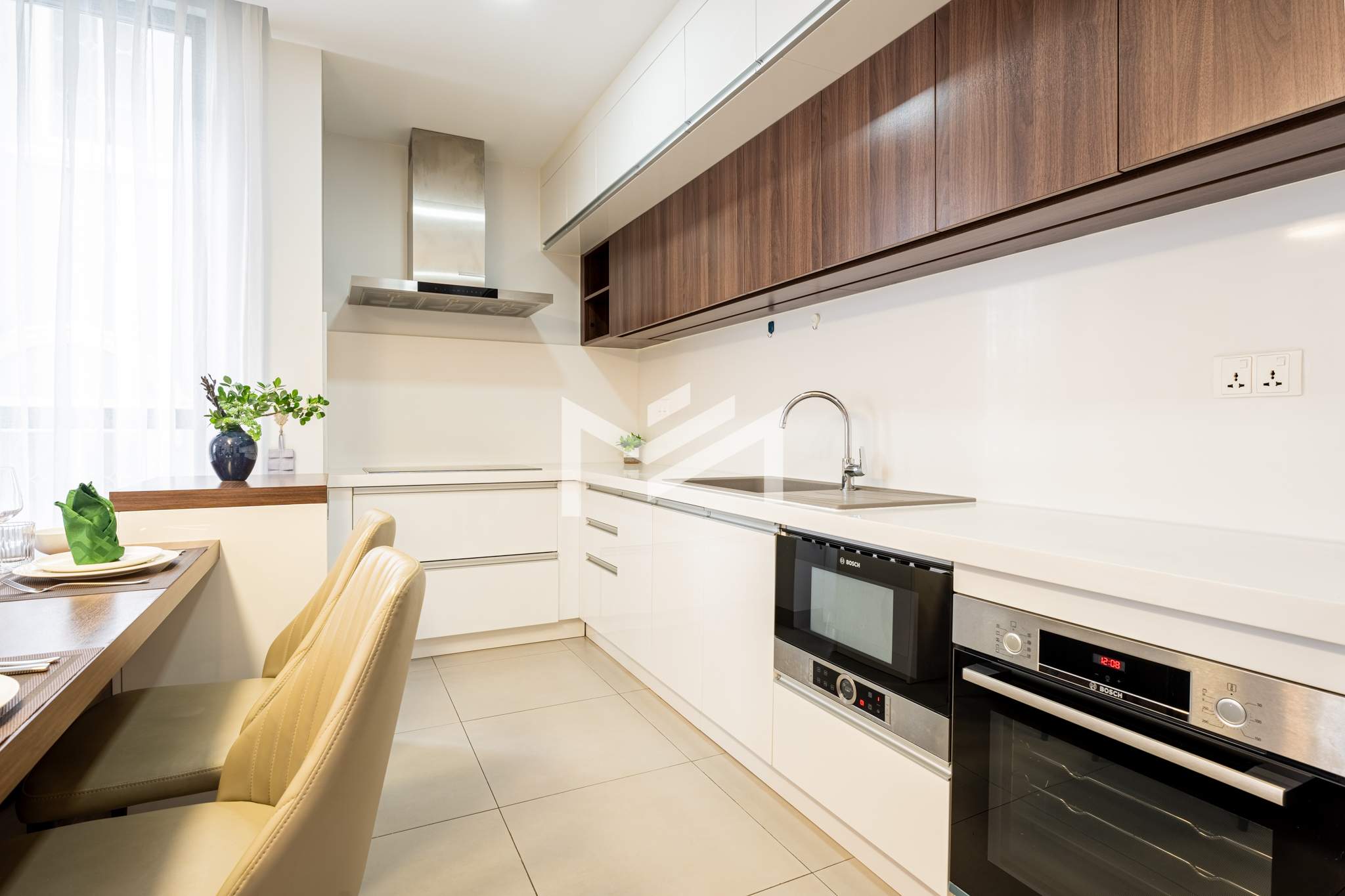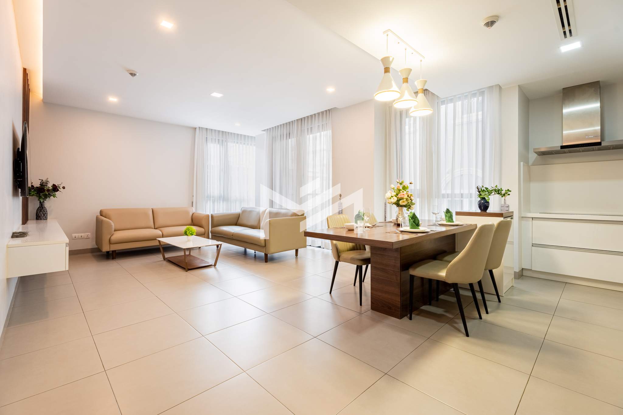 Well-Maintained Apartment in the Heart of BKK1 – Cozy yet warm and comfortable, this fully furnished home is equipped with high-quality luxury appliances, including a big kitchen with built-in oven, two-door fridge, and kitchen island. The spacious bedroom offers ample closet space, while the large bathroom adds to the comfort. Move-in ready with just your suitcase, services are included with only utilities on top. Enjoy rooftop facilities such as gym, pool, steam, and sauna, all in an excellent central location in BKK1.