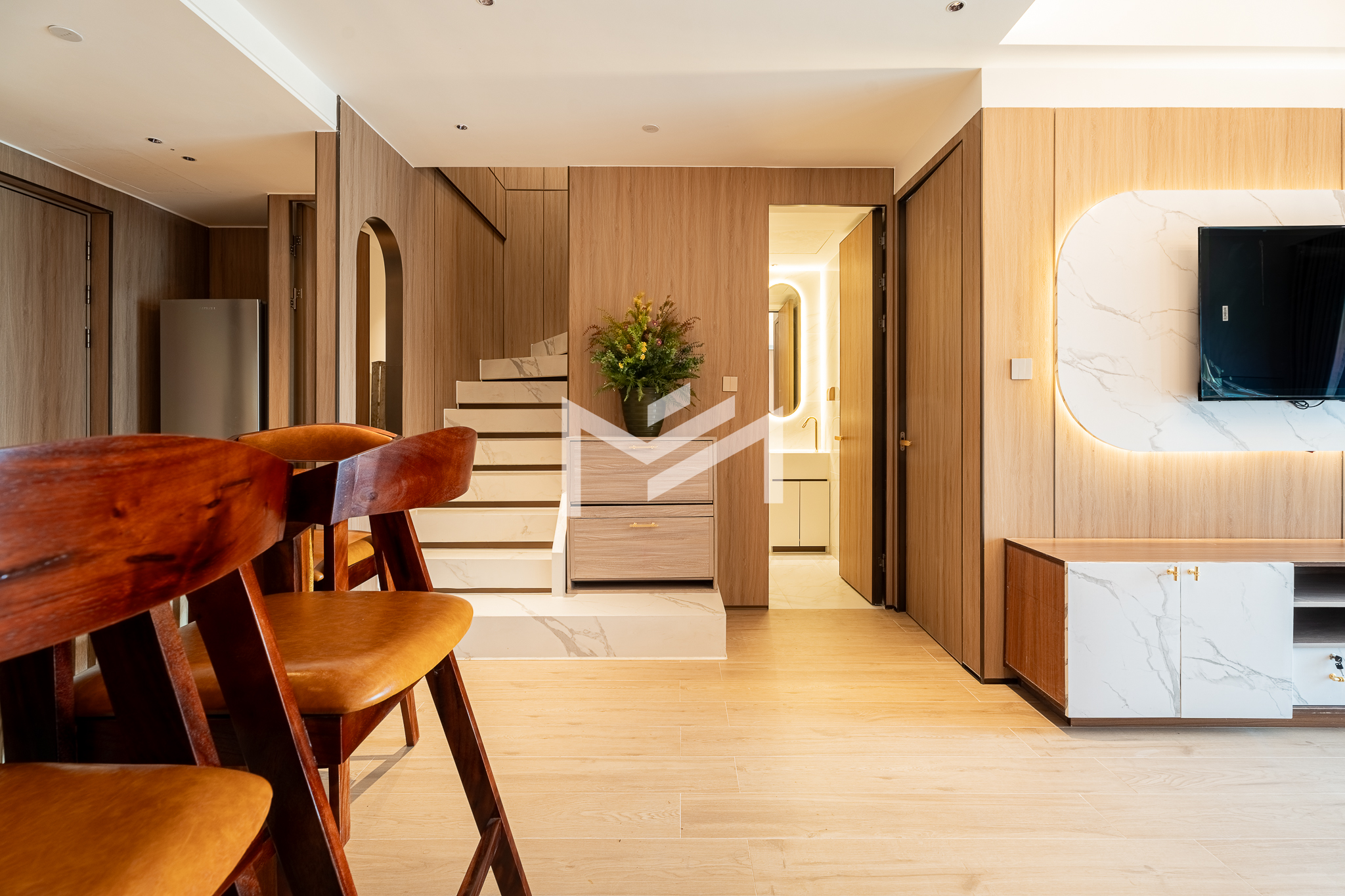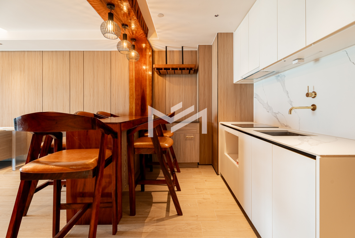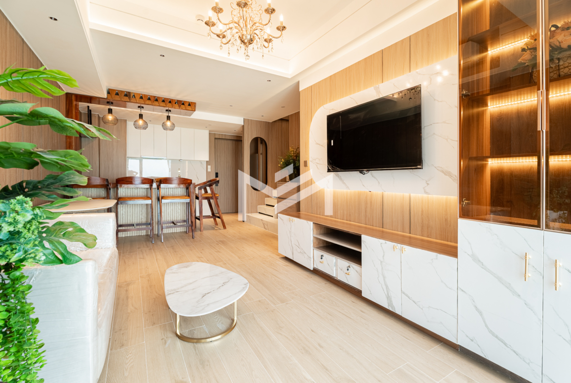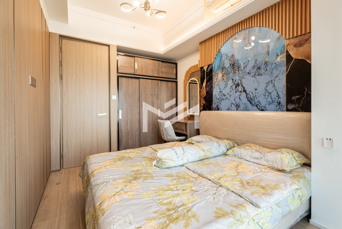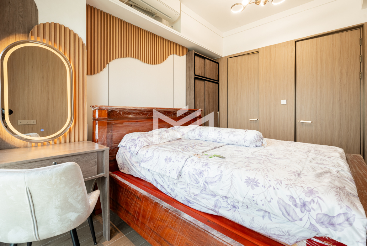 Duplex unit with excellent river views, offering fresh air and abundant natural light throughout the space. The layout is suitable for a family or colleague sharing, providing comfortable and practical living. Located in a brand-new condominium in the peaceful new development area of Koh Norea, the unit is fully equipped and ready to move in with just a suitcase. Residents enjoy rooftop amenities including a gym and swimming pool, while Diamond Island is only about 5 minutes away, making it a cozy and convenient place to live.