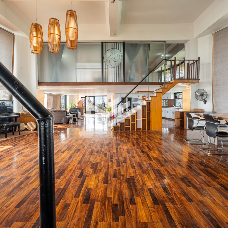 This 650 sqm penthouse office offers breathtaking views of both the Tonle Sap and Mekong Rivers, creating a calm, green environment ideal for productivity and creativity. The space features a large open-plan layout with private mezzanine offices, generous relaxation areas, and casual meeting spaces that support both collaboration and focused work. The office is equipped with six air-conditioning units, two toilets, and large balconies on both sides providing uninterrupted river views and excellent natural ventilation. The building offers 24-hour security and backup generators, ensuring comfort and uninterrupted operations at all times. This is a rare opportunity for businesses seeking a unique penthouse office with river views in Chroy Changvar.
