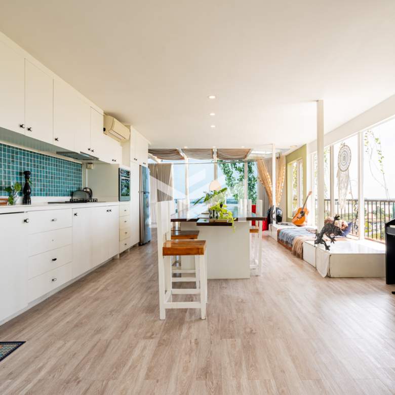 A beautifully renovated one-floor corner penthouse located on the top floor of an office building, offering a stunning open view over the Chroy Changvar area. Fully furnished and fully set up, ready for immediate move-in. The unit features elevator access, backup generator, security guard, and parking included. Peaceful surroundings provide a truly relaxing atmosphere away from the city crowds, yet only about 10 minutes’ drive to Phnom Penh CBD.